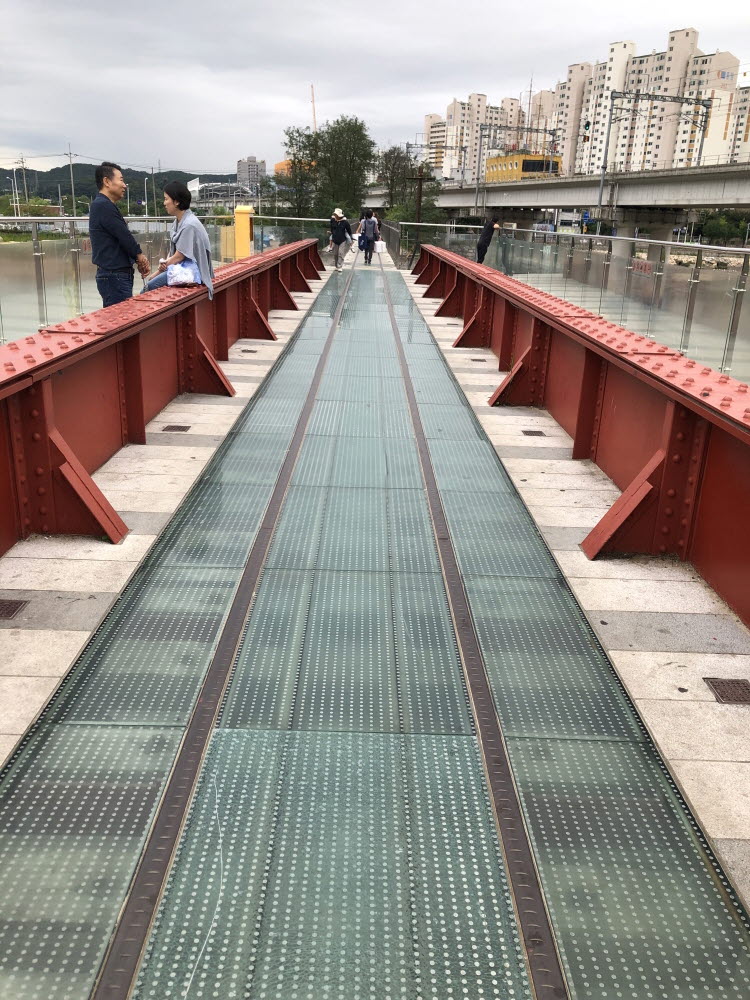 오른쪽에는 전철이 다니는 표준궤 전철 다리