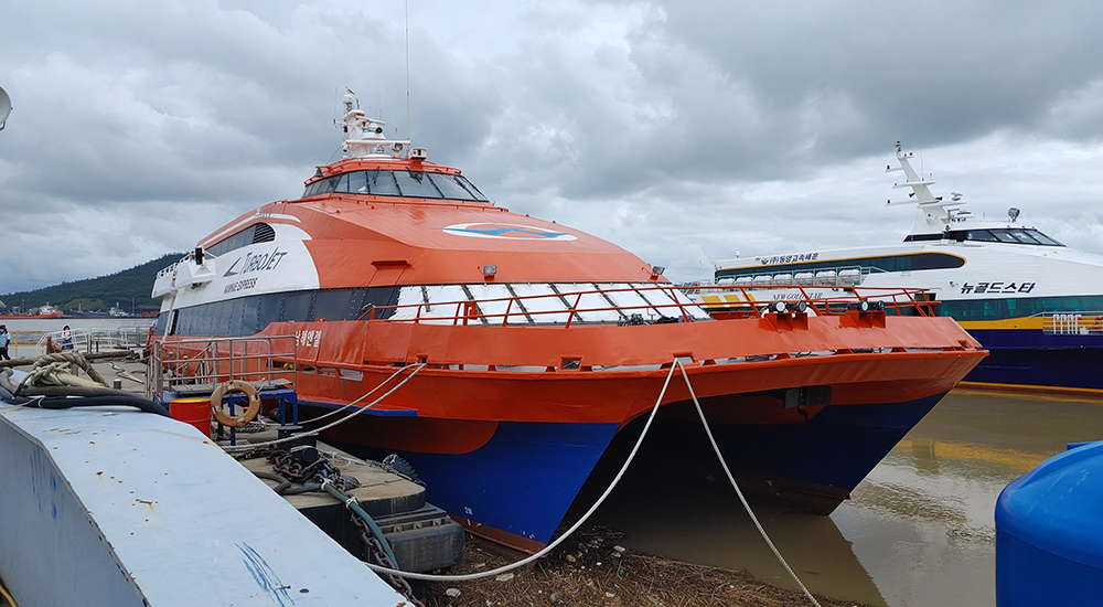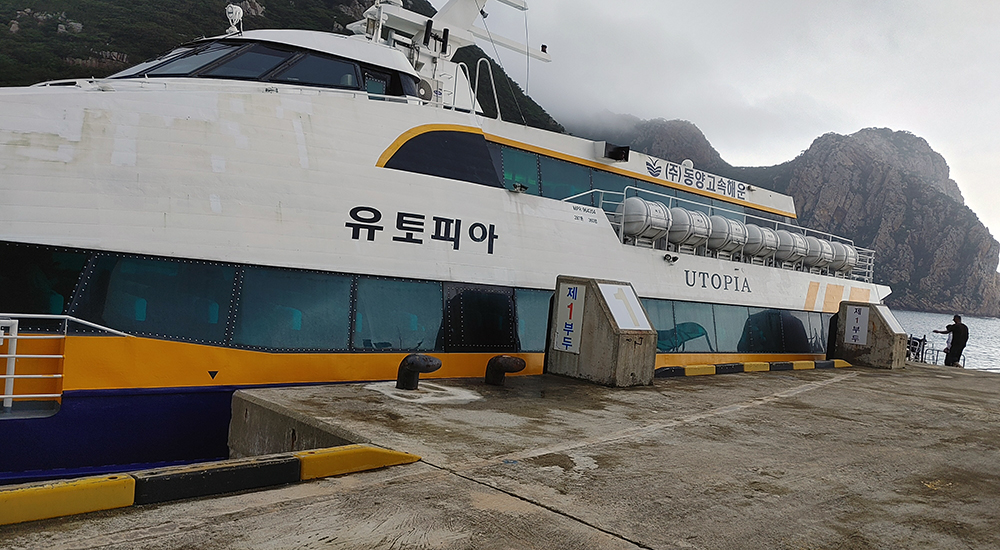 제가 타고 갈 배입니다. 저런 배를 쌍동선이라고 하지요?