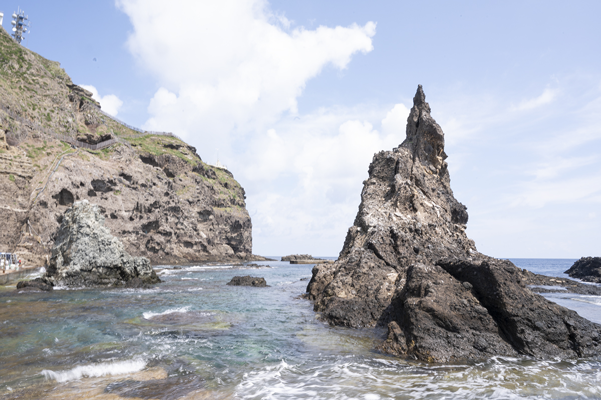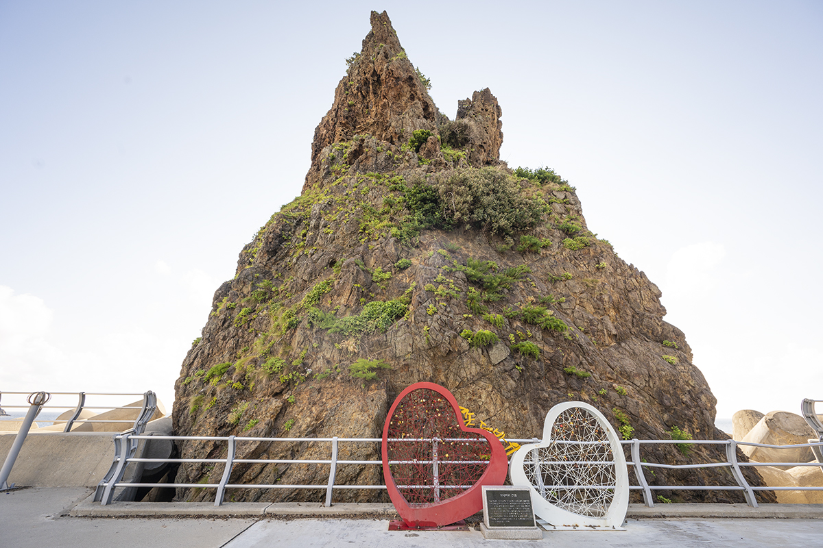 촛대바위가 방파제와 연결되어 있습니다.