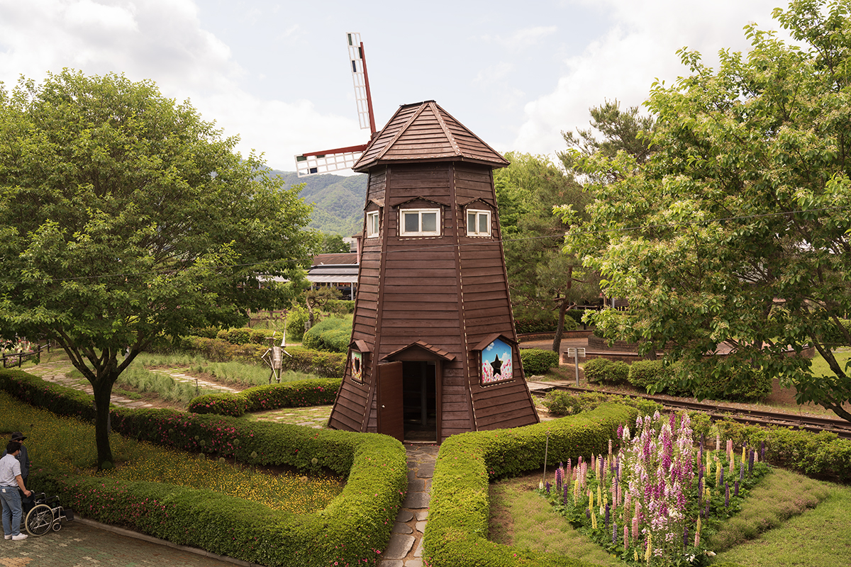 꽃들과 정원이 잘 꾸며져 있습니다.