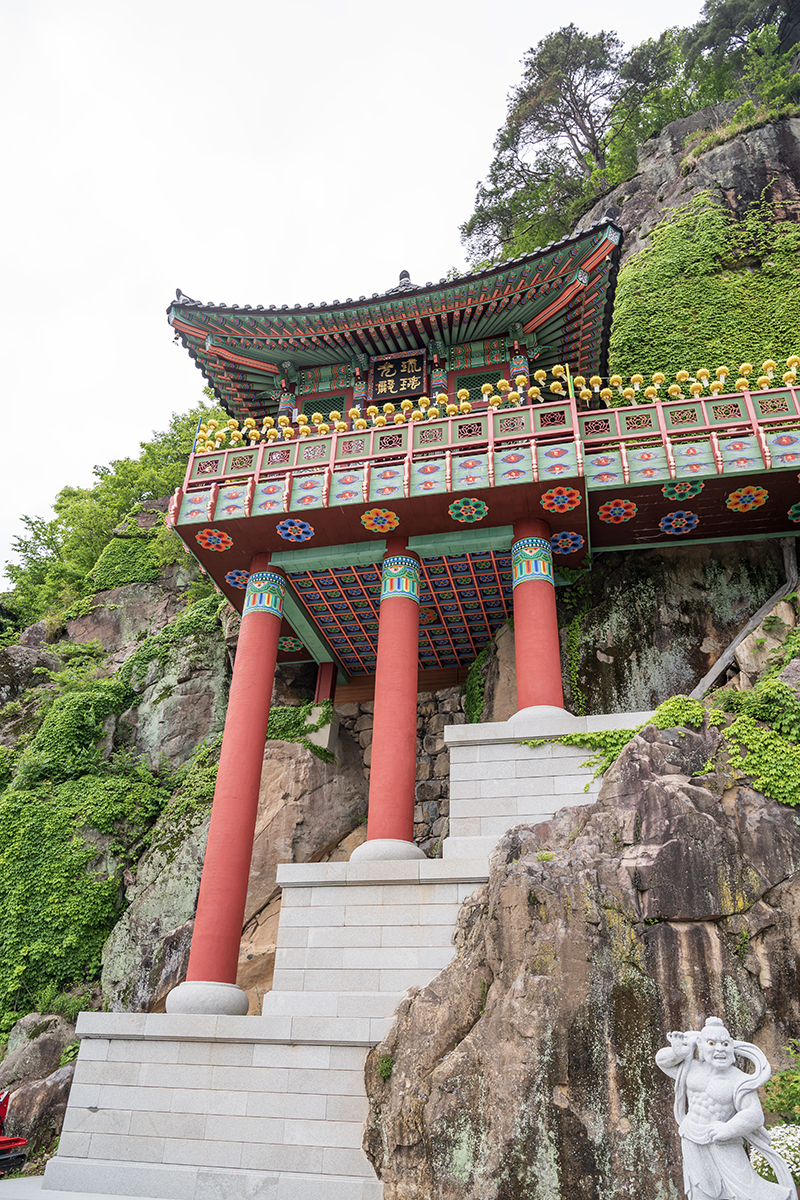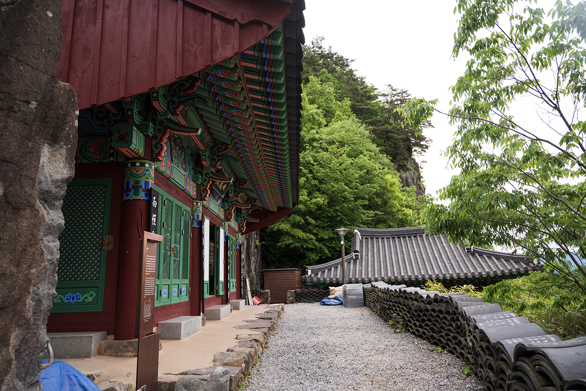 사찰이 절벽 앞에 지어졌습니다.