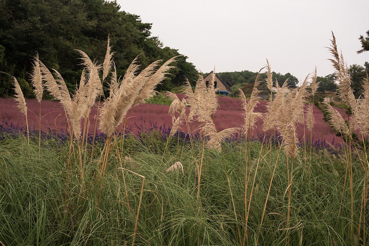 There are beautiful pink muhly.