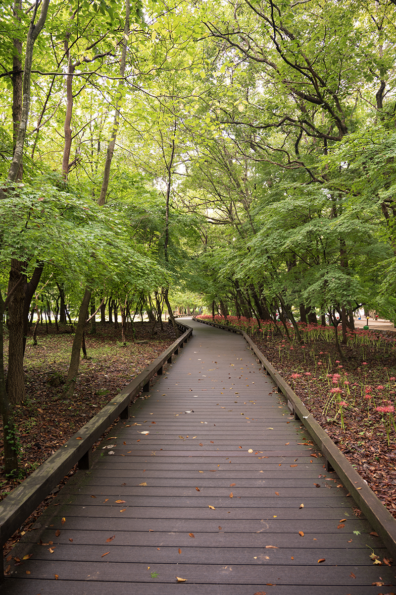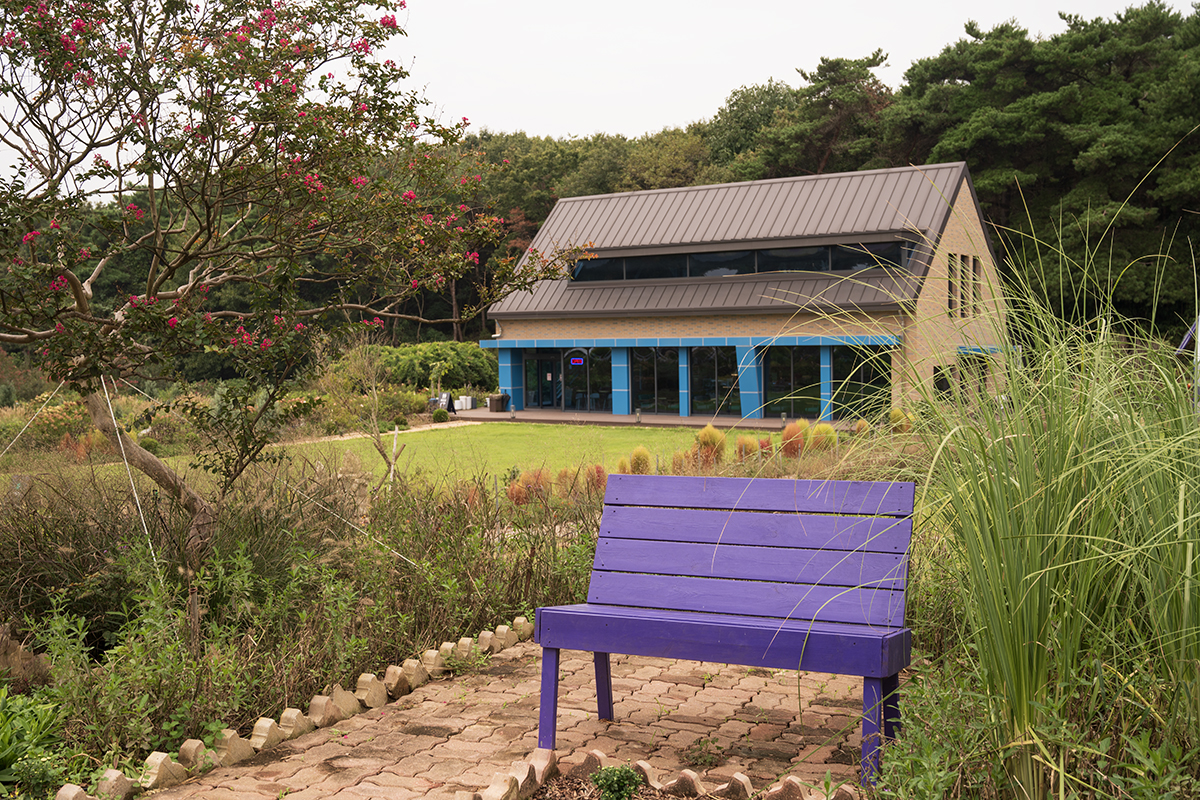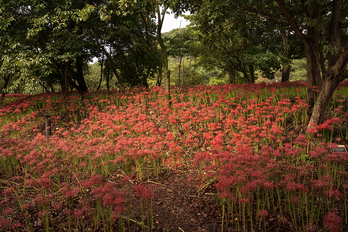 주차장에서 들어가는 길에, 꽃이 많이 피어있습니다.