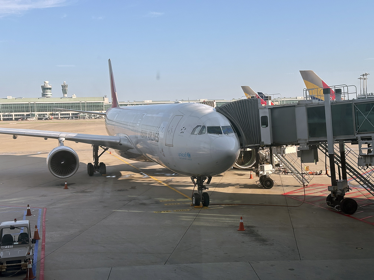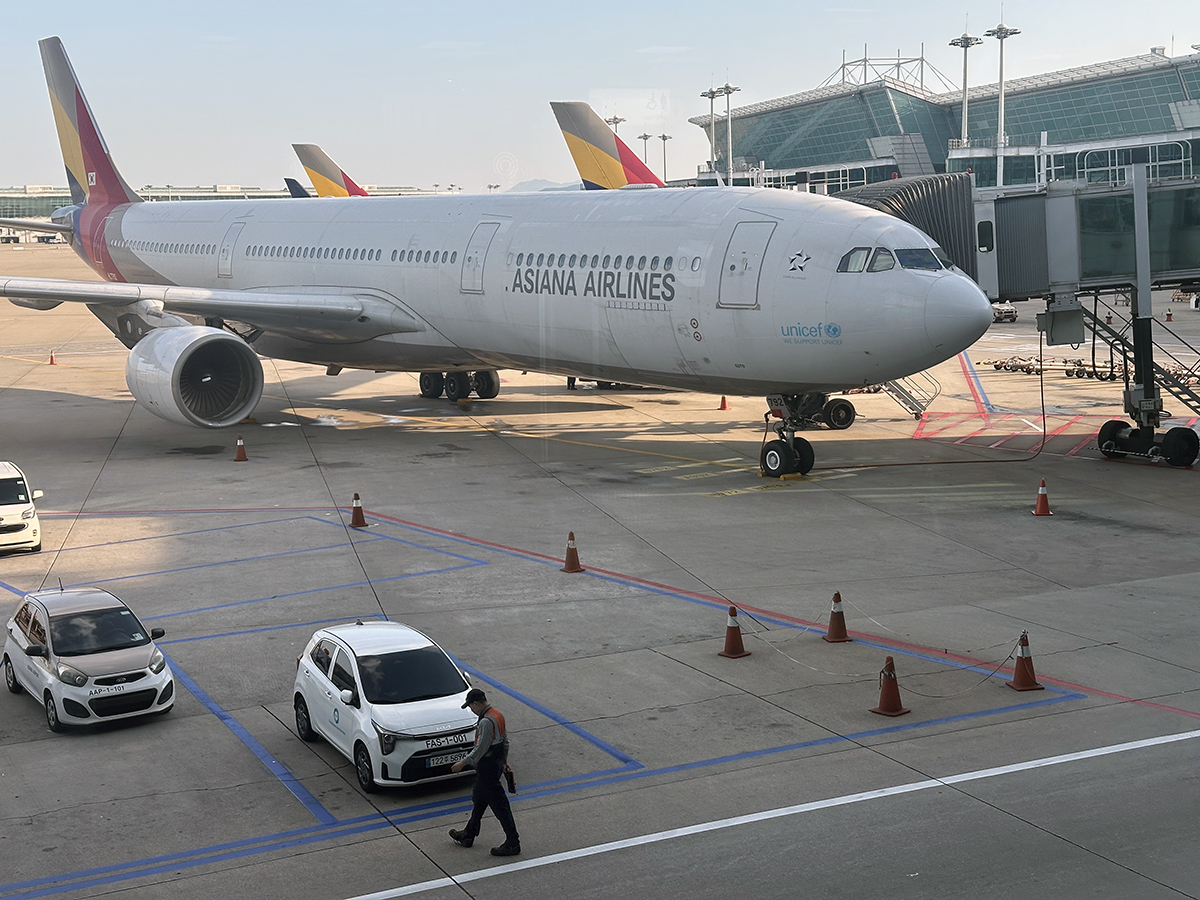 I get in plane, Asiana airline, from Incheon to Shanghai.