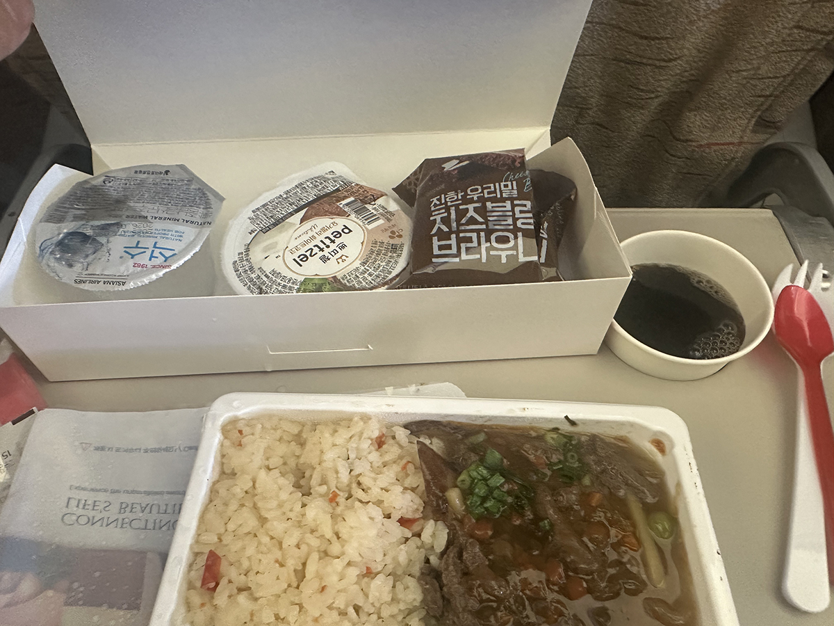 I get in plane, Asiana airline, from Incheon to Shanghai.