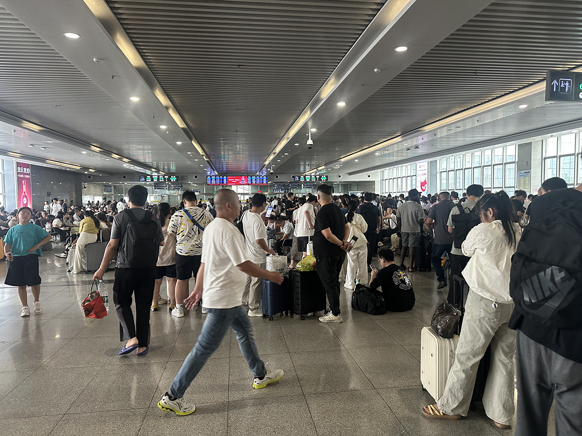 Shanghai train station is big, and much people.