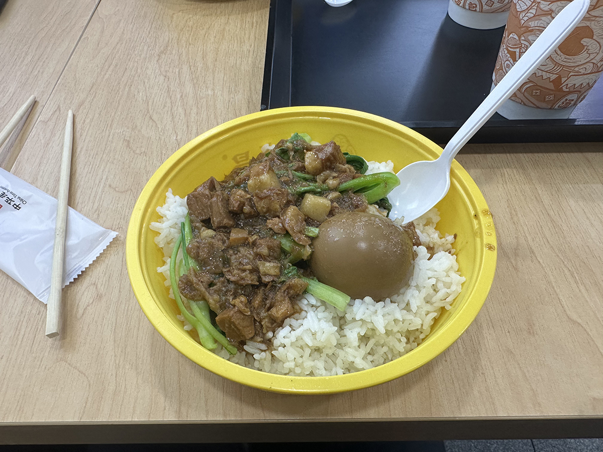 Having lunch at station,