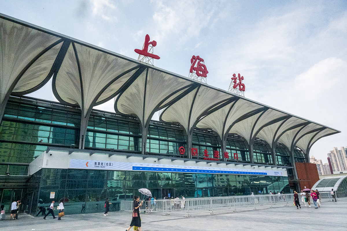 We go to Shanghai train station.